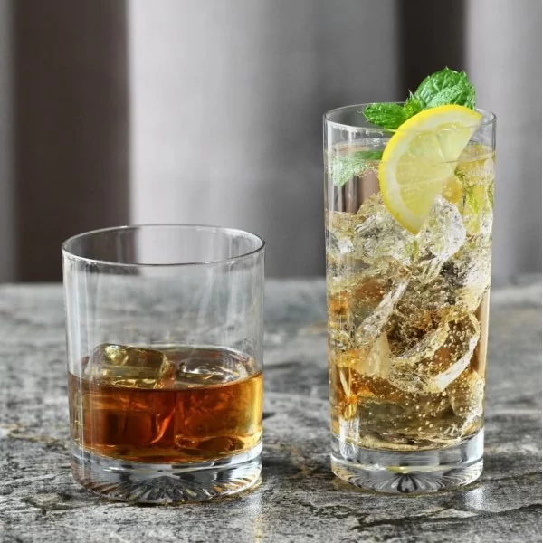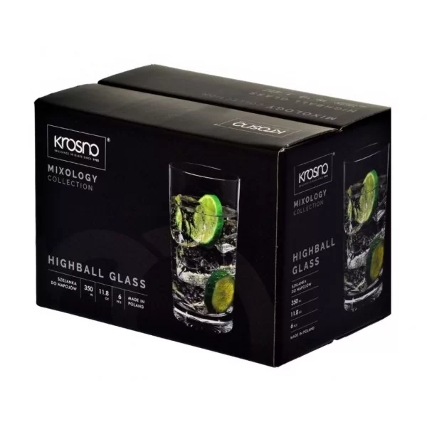 Wysokie szklanki do napojów lub drinków z kolekcji Mixology KROSNO 350 ml z tłoczonym dnem. Pojemność szklanek – 350 ml – umożliwia swobodne uzupełnienie płynu o owoce, zioła, lód i inne dodatki, a grubość ścianek i stabilnego dna pozwalają zachować zawartość w idealnej temperaturze.