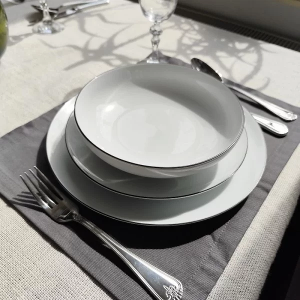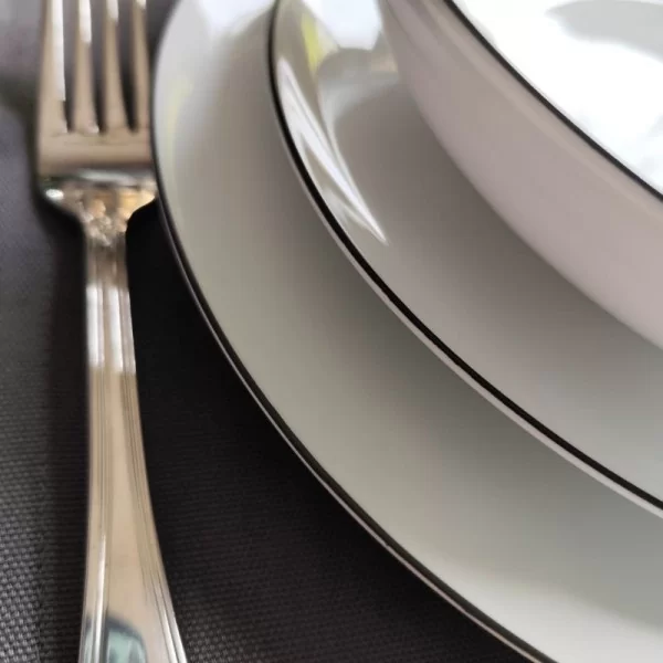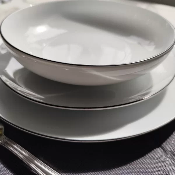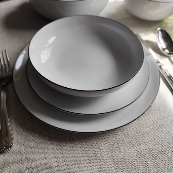 Niezwykle wygodny i uniwersalny fason w trochę innym wydaniu. Piękna biel porcelany oraz ranty podkreślone czarną obwódką, która wydobywa piękno tych naczyń. Naczynia z tej kolekcji można dowolnie mieszać zgodnie z zasadą mich&match także z talerzami posiadającymi obwódki w innych kolorach. Stworzony dla tych, którzy lubią podążać za modą oraz eksperymentować z nakryciami na stole. Zastawa posiada wiele elementów, które możesz sukcesywnie dokupywać na sztuki.
