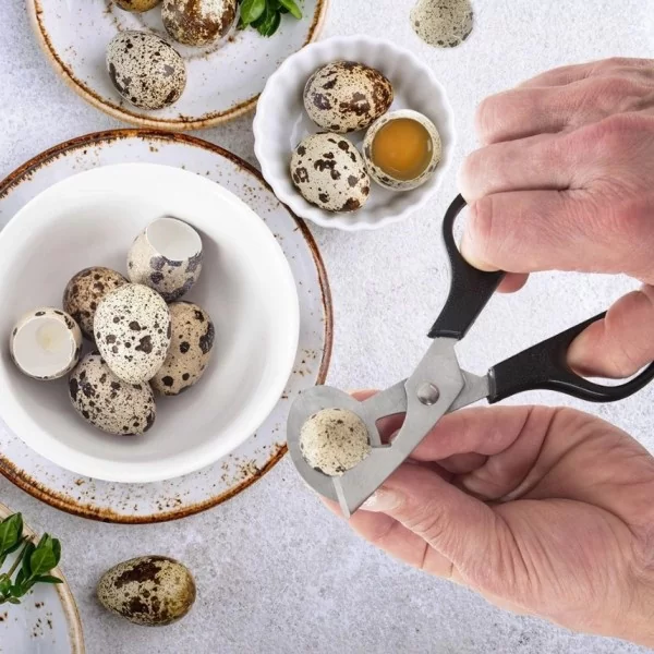 UNIWERSALNE - Doskonale nadaje się do jaj przepiórczych i innych małych jajek. Pomaga w przygotowywaniu różnych dań, takich jak jajecznica czy jajka sadzone. Nożyczki możemy także wykorzystać do krojenia ziół, warzyw czy innych mniejszych składników.