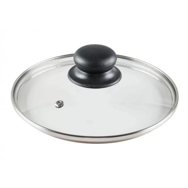 SZKLANA - Pokrywka wykonana z żaroodpornego, przezroczystego szkła. Posiada obręcz wykonaną ze stali nierdzewnej w kolorze srebrnym oraz uchwyt z wytrzymałego tworzywa w czarnym kolorze. Przezroczysty kolor pokrywki pozwoli nam na sprawdzenie procesu gotowania bez konieczności jej podnoszenia. Pokrywka jest odporna na wysokie temperatury do max. +200°C.
