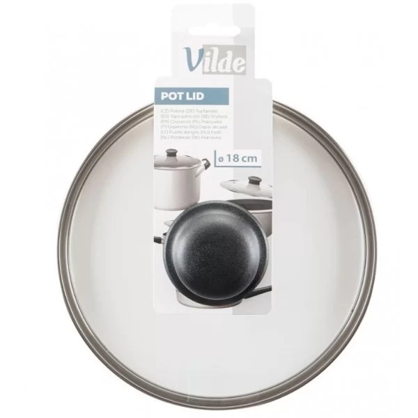 Uniwersalna pokrywka szklana, idealne pasująca do naczyń, patelni i garnków o średnicy 18 cm. Wykonana z wytrzymałych i solidnych materiałów. Będzie świetnym uzupełnieniem garnka lub patelni, które pokrywki w zestawie nie posiadały. Klasyczny kształt zapewni wygodne użytkowanie.