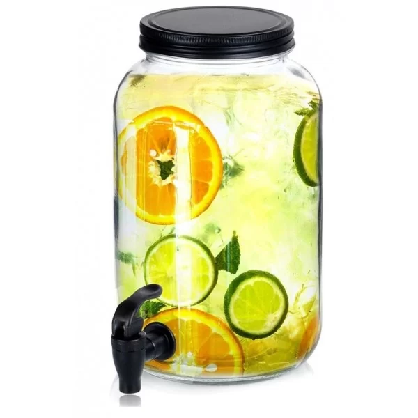 Szklany dystrybutor z kranikiem idealny do serwowania wody, lemoniady, soku, herbaty mrożonej, wody smakowej, ale również ponczu. Dzięki kranikowi w łatwy sposób zaserwujemy ulubione napoje w sposób efektowny. Słój wykorzystamy zarówno w ogrodzie, jak i podczas spotkań rodzinnych. Dzięki zamykanej pokrywie żadne owady nie dostaną się do naszego napoju.