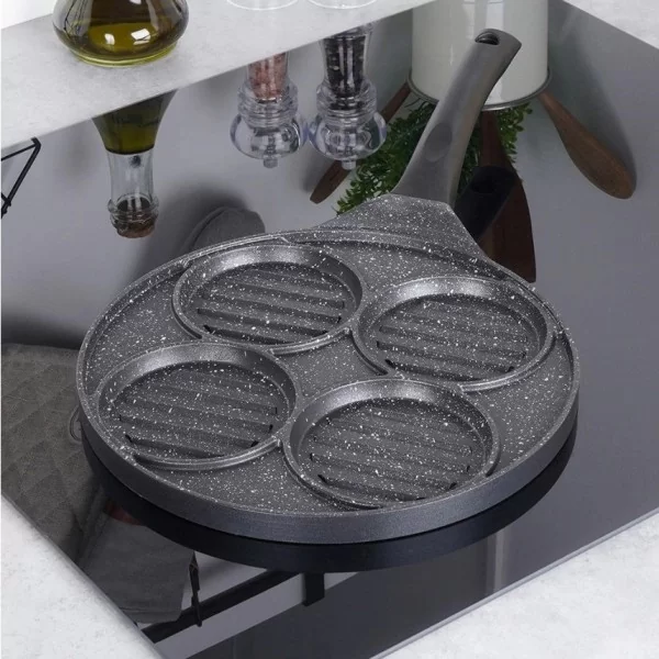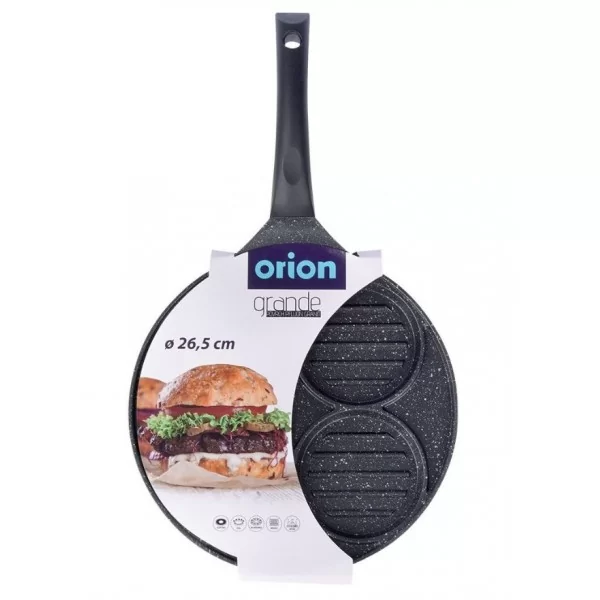 Patelnia do burgerów i jajek granitowa grillowa 4 otwory 26,5 cm Orion - Grande