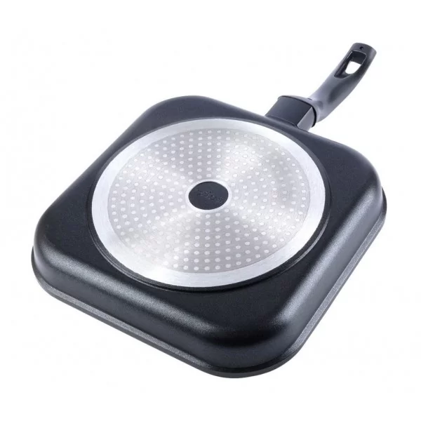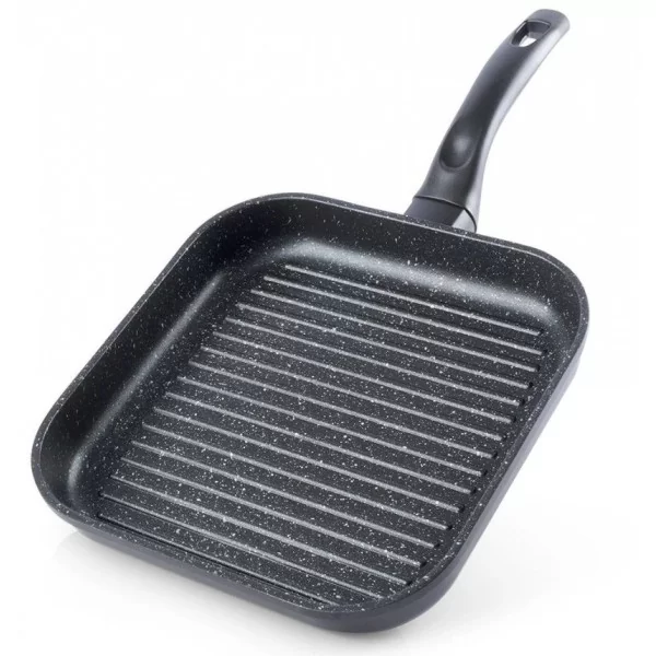 Kwadratowa, nieprzywierająca patelnia grillowa o wyjątkowym, ponadczasowym wyglądzie. Patelnia jest niezbędna w każdej kuchni. Z jej pomocą przygotujemy grillowane mięso, warzywa oraz ziemniaki. Świetnie sprawdzi się do smażenia burgerów.