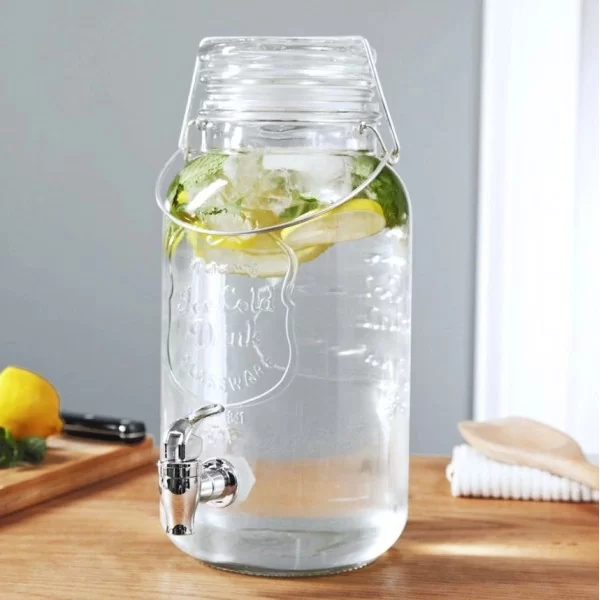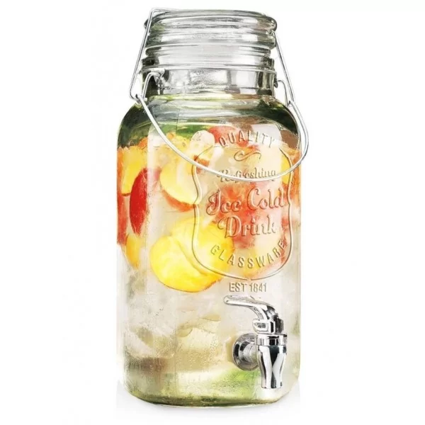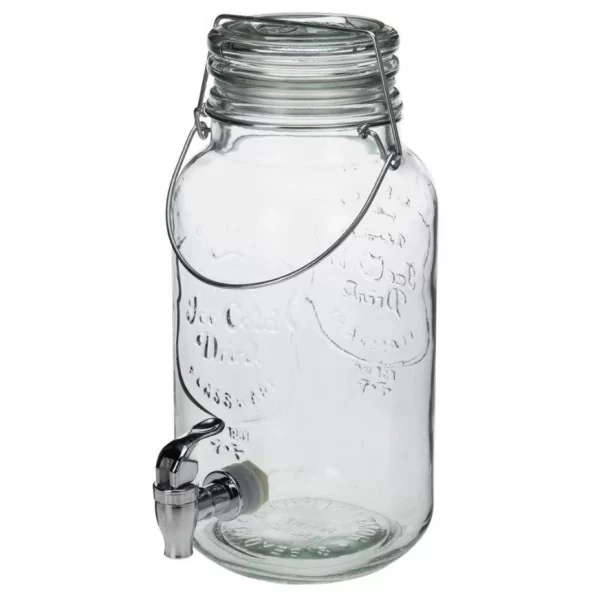 Szklany dystrybutor z kranikiem idealny do serwowania wody, lemoniady, soku, herbaty mrożonej, wody smakowej, ale również ponczu. Dzięki kranikowi w łatwy sposób zaserwujemy ulubione napoje w sposób efektowny. Słój wykorzystamy zarówno w ogrodzie, jak i podczas spotkań rodzinnych.