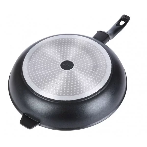 Nieprzywierająca patelnia o wyjątkowym, ponadczasowym wyglądzie z serii GRANDE. Doskonałe przewodnictwo materiału eliminuje straty ciepła, a tym samym pozwala to na oszczędność czasu potrzebnego do przygotowania potrawy. Patelnia efektownie prezentuje się w kuchni. Z jej pomocą usmażymy mięso, warzywa, jak i naleśniki.