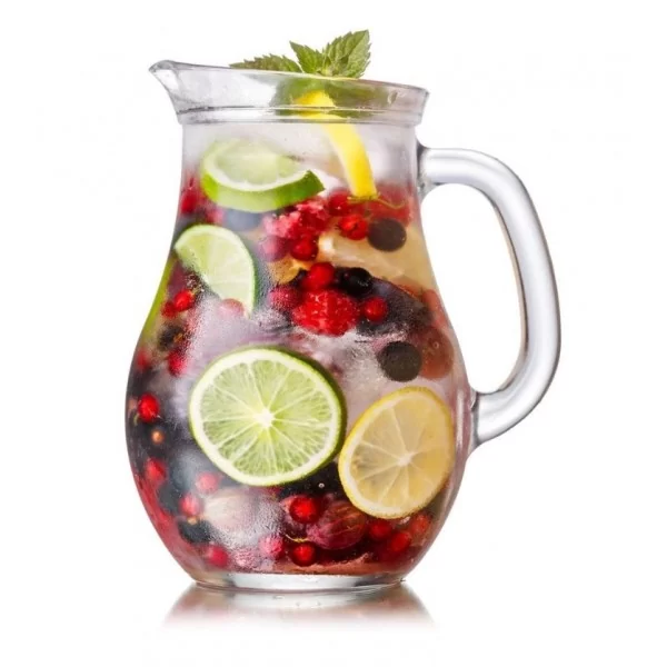 SZKLANY - Wykonany z grubego szkła w przezroczystym kolorze. Dzbanek nie nadaje się do wrzących napojów, jest odporny na wysokie temperatury do max. 60°C.