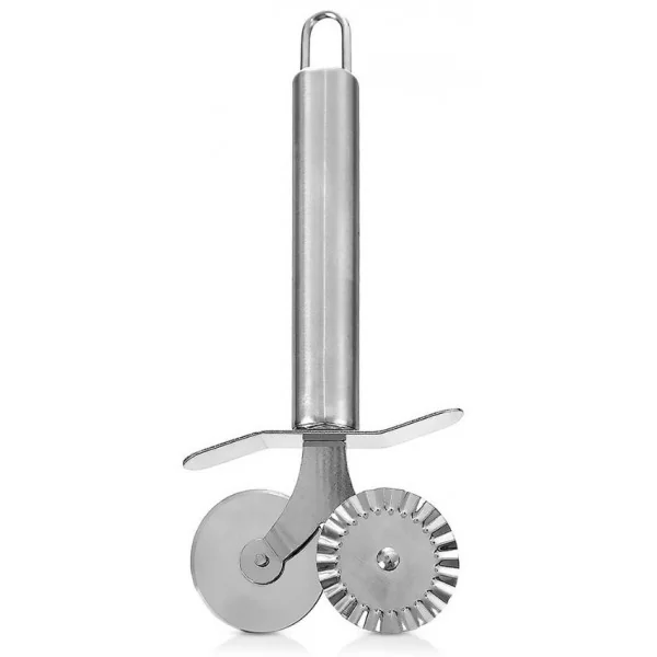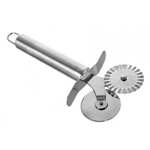 Radełko z podwójnymi ostrzami: gładkim i falistym. Wykonane z solidnych materiałów, odpowiednio użytkowane posłuży długie lata. Radełko posiada uniwersalne zastosowanie i sprawdzi się do przygotowywania makaronów, ale również słodyczy czy nawet do dekoracji tort i ciast.