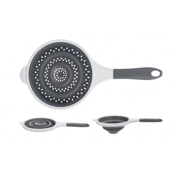 Sitko kuchenne wykonane z silikonu, dzięki czemu możemy w łatwy sposób je złożyć i przechowywać, nie zajmując przy tym dużo miejsca. Wygodne w użytkowaniu, posiada długi uchwyt. Sitko sprawdzi się do odcedzania ugotowanych warzyw, makaronu oraz różnych artykułów żywnościowych. Składana konstrukcja umożliwia łatwe przechowywanie.