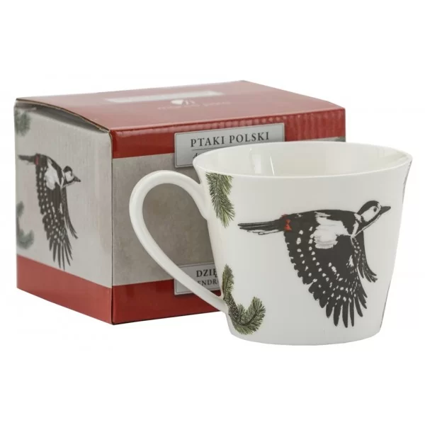Kubek zapakowany w ozdobne pudełko z tym samym motywem to doskonały prezent dla bliskiej osoby, która również kocha przyrodę i docenia piękno ptasiego uroku.