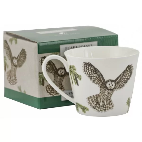 Uroczy, klasyczny biały kubek z serii PTAKI POLSKI firmy MARCO POLO. Wykonany z najwyższej jakości porcelany tzw. porcelany kostnej. Pojemność kubka 400 ml. Cudny kubeczek ozdobiony motywem PUSZCZYKA na białym tle.