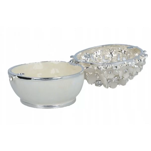 Pełna uroku szkatułka puzderko na biżuterię. Wykonana z metalu w kolorze srebrnym, w celu zapewnienia długoletniej ochrony metalu w całości platerowana.