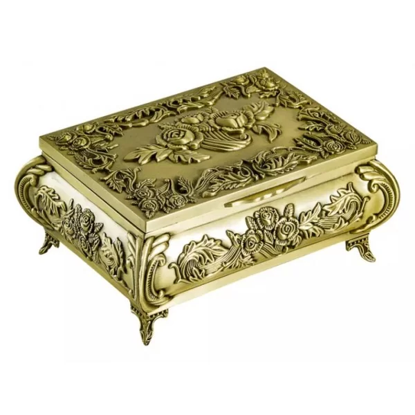 Nasza szkatułka to świetny prezent dla kobiety na wiele różnych okazji. Szkatułkę wykonano z wysokiej jakości metalu. Powierzchnia szkatułki jest platerowana.