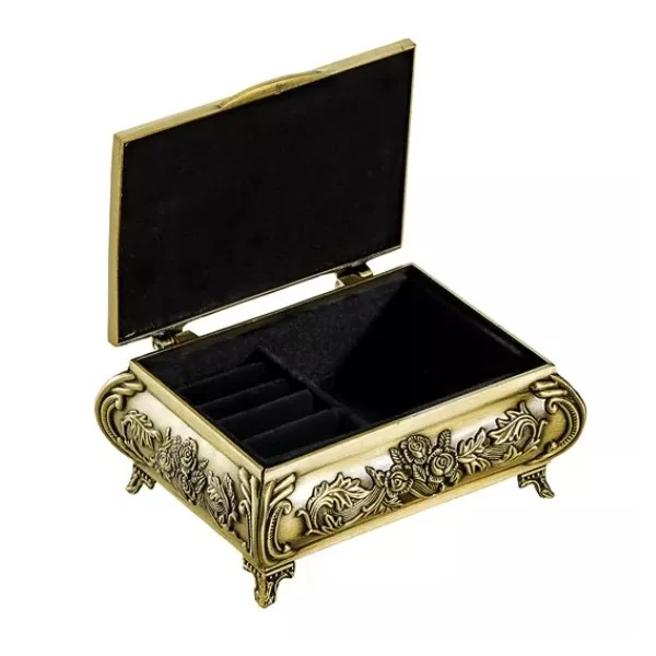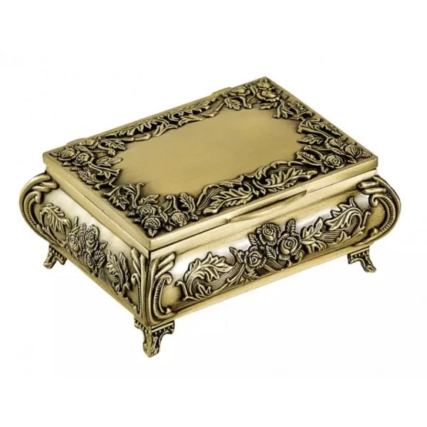 Nasza szkatułka to świetny prezent dla kobiety na wiele różnych okazji. Szkatułkę wykonano z wysokiej jakości metalu. Powierzchnia szkatułki jest platerowana.