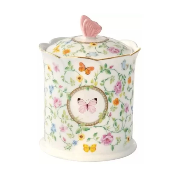Porcelanowy słoik Dancing Butterflies z motywami motyli i złotym wykończeniem to elegancki i dekoracyjny przedmiot, który wnosi magię wiosny do każdego wnętrza.