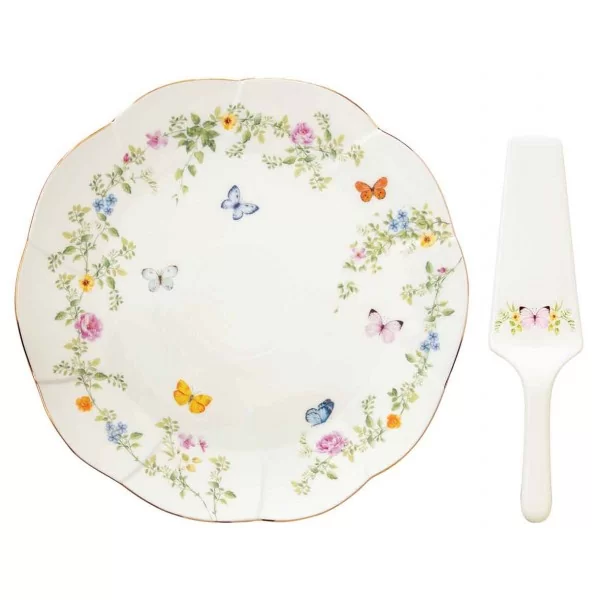 Patera do ciasta 32cm z łopatką z włoskiej porcelany Marco Polo - Motyle