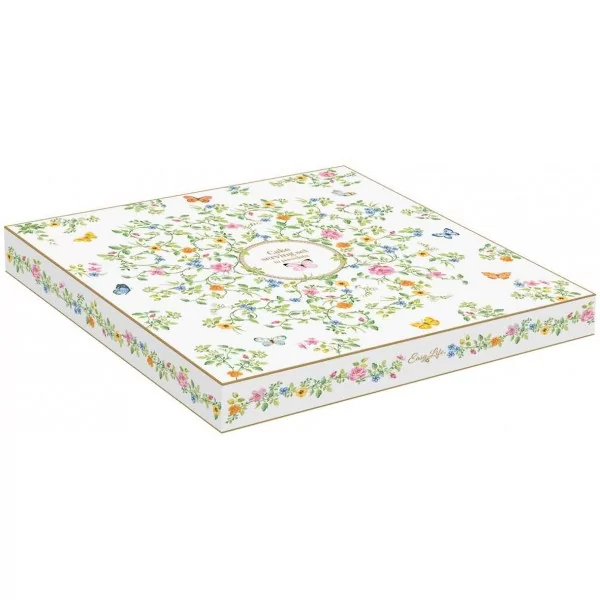 Półmisek wyróżnia się delikatnym wzornictwem z motywami tańczących motyli i kwiatów, które wnoszą świeżość i elegancję do Twojego stołu. Średnica talerza to 21 cm. Wykonany z włoskiej porcelany.