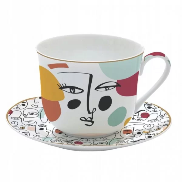 Duża, śniadaniowa filiżanka (400ml) ze spodkiem Atmosphere/Almost Like Picasso (prawie jak Picasso) o nietypowym, oryginalnym motywie inspirowanym twórczością jednego z najwybitniejszych malarzy XX wieku - hiszpańskiego artysty Pablo Picasso.