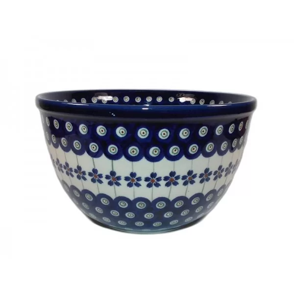 Miska ceramiczna o pojemności 2,25l , dekorowana ręcznie metodą stempelkową motywem w barwach kobaltu i błękitu od Zakładów Ceramicznych Bolesławiec.