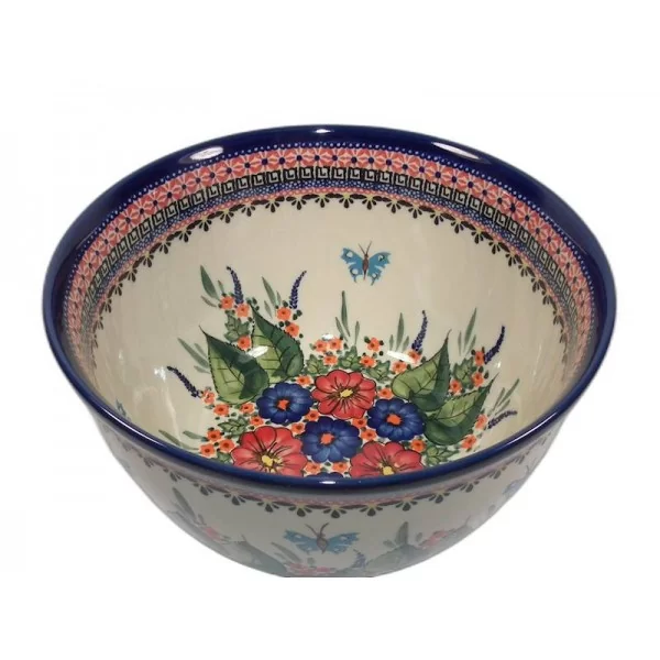 Ceramiczna duża misa o pojemności 4,5l, dekorowana ręcznie sielskim motywem fiołków. Kolekcja ART Zakładów Ceramicznych Bolesławiec.
