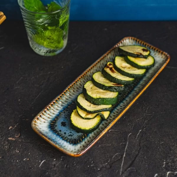 Ceramiczny, prostokątny półmisek 25 cm. Linia OMBRES to wyjątkowa kolekcja ceramiki dostępna w różnych kolorach, idealna do pieczenia, zapiekania oraz serwowania potraw. Każdy produkt z tej serii cechuje się unikalnym wyglądem, ponieważ żadne dwa elementy nie są identyczne.