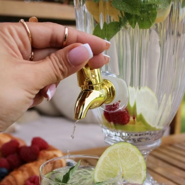 Wykonany z grubego szkła słój do przygotowywania zimnych napojów. Duży otwór ułatwia dodawanie lodu lub owoców. Szczelny kranik oraz zakręcana pokrywa sprawiają, że napoje długo pozostają świeże i aromatyczne. Kranik jest wkręcany, co umożliwia łatwe wyjmowanie i czyszczenie. Należy jednak uważać podczas ponownego wkręcania, aby uniknąć rozszczelnienia słoja.
