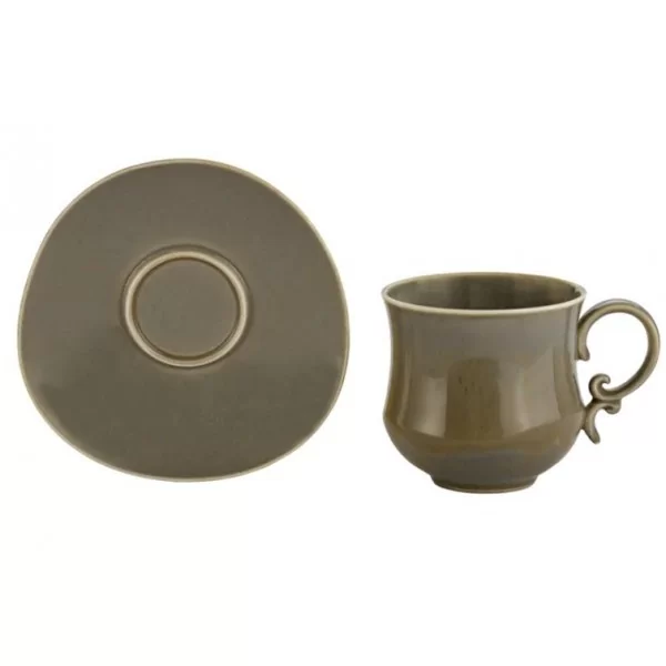 Ta porcelanowa filiżanka o pojemności 400 ml to doskonałe połączenie klasycznego kształtu z ciepłym, nowoczesnym kolorem khaki. Delikatnie połyskująca powierzchnia i finezyjnie wyprofilowane uszko nadają jej wyjątkowego uroku, a solidna konstrukcja zapewnia komfort użytkowania.