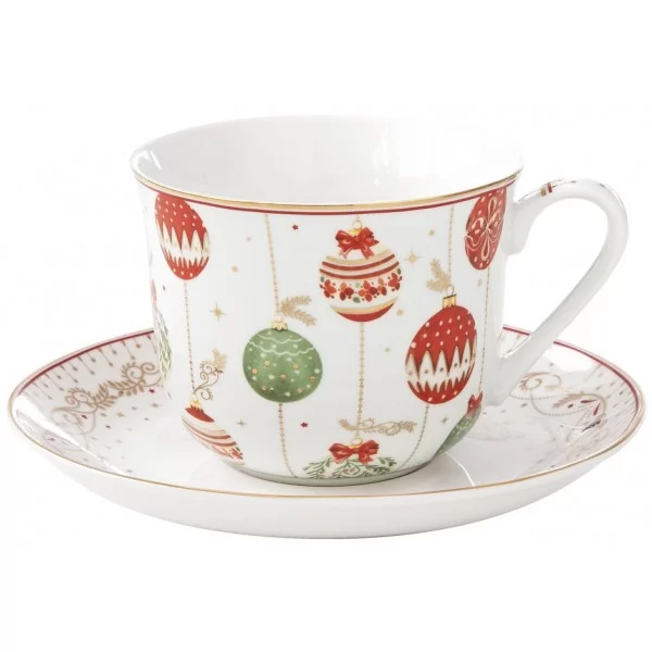 Świąteczna filiżanka o pojemności 370 ml z porcelany z motywami Bożego Narodzenia, dekoracji świątecznych – idealne na zimowe wieczory i jako elegancki prezent pod choinkę. Zapakowana w ozdobne pudełko.