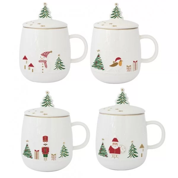 Porcelanowy kubek z zaparzaczek i przykrywką o pojemności 450 ml. Idealny do parzenia zimowej herbaty w świąteczne wieczory.