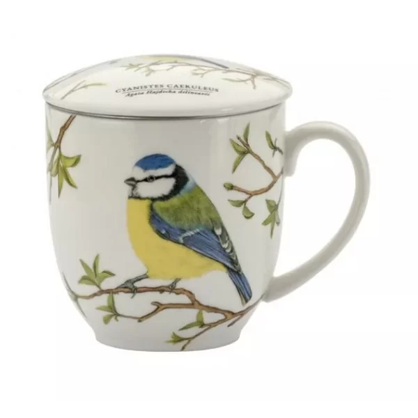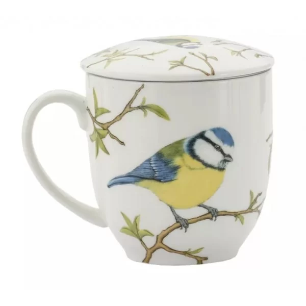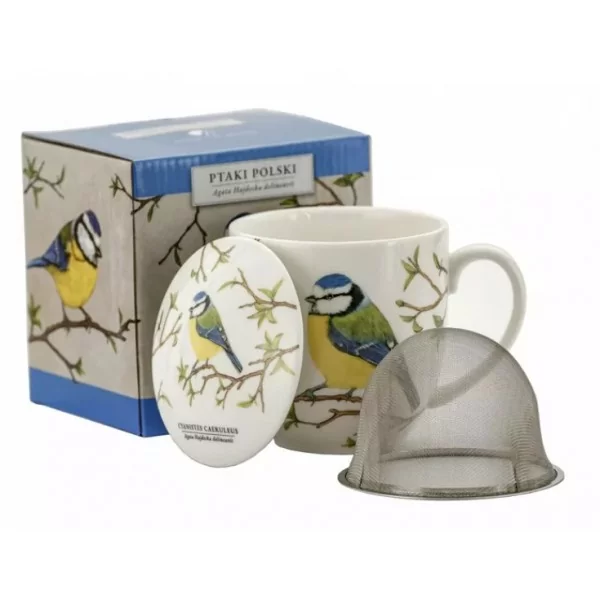 Uroczy, klasyczny biały kubek z serii PTAKI POLSKI firmy MARCO POLO z zaparzaczek i przykrywką. Wykonany z najwyższej jakości porcelany tzw. porcelany kostnej. Pojemność kubka 380 ml. Cudny kubeczek ozdobiony Sikorką na białym tle.
