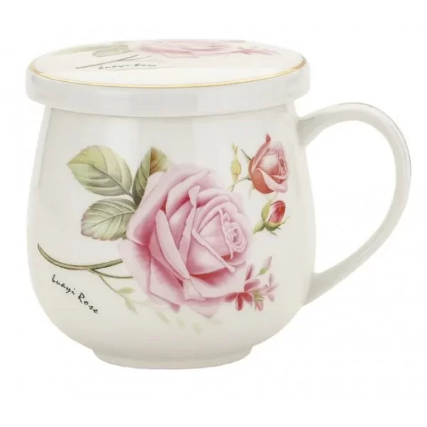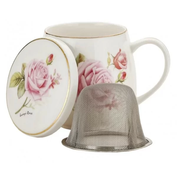 Porcelanowy kubek o pojemności 320 ml z zaparzaczem i przykrywką. W zestawie znajduje się stalowy zaparzacz do herbaty liściastej, który umożliwia wygodne parzenie ulubionych naparów bez fusów. Praktyczna pokrywka nie tylko utrzymuje ciepło napoju, ale może również służyć jako podstawka pod zaparzacz po jego wyjęciu.