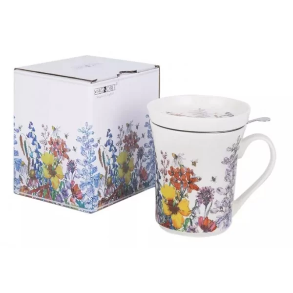 Porcelanowy kubek o pojemności 250 ml z zaparzaczem i przykrywką. W zestawie znajduje się stalowy zaparzacz do herbaty liściastej, który umożliwia wygodne parzenie ulubionych naparów bez fusów. Praktyczna pokrywka nie tylko utrzymuje ciepło napoju, ale może również służyć jako podstawka pod zaparzacz po jego wyjęciu.