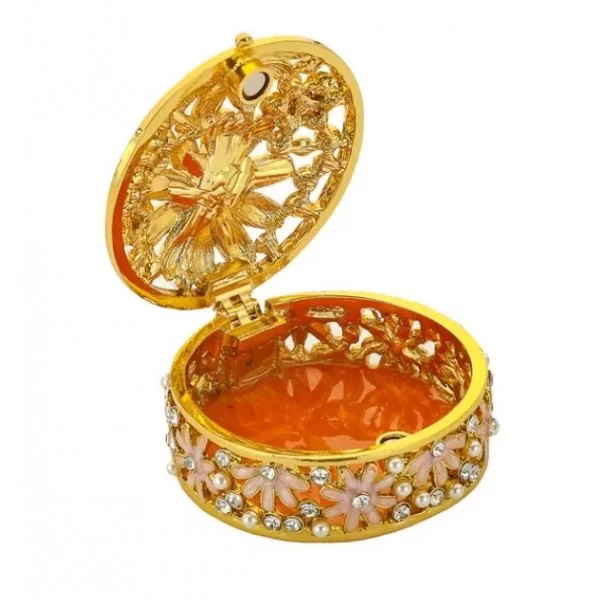 Puzderko, gustowna dekoracja na kobiecą toaletkę. Wybornie prezentuje się i wspaniale służy. Pomimo niewielkich rozmiarów pomieści wiele cennej, kobiecej biżuterii. Szczególnie nada się jako kasetka na pierścionki czy kolczyki.
