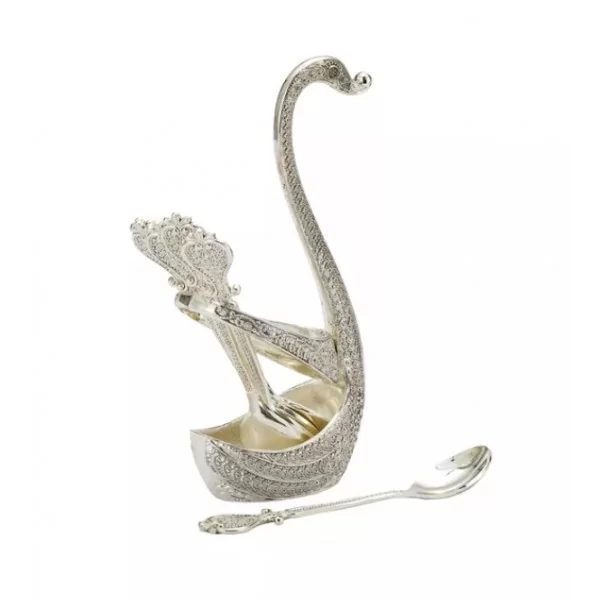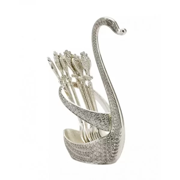 Elegancki stojak ozdobny w kształcie łabędzia z kompletem łyżeczek – idealny dodatek do stylowej kuchni lub prezent. Połączenie funkcjonalności i dekoracyjnego uroku.