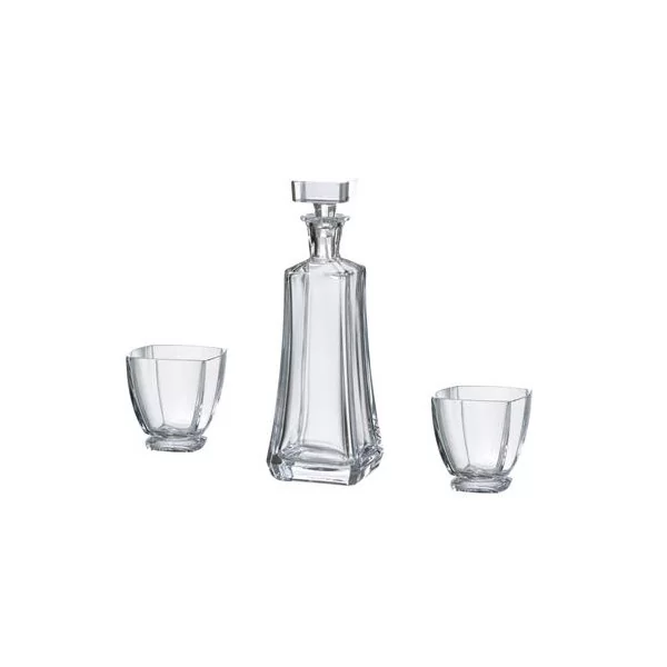 Komplet do whisky składający się z karafki o pojemności 700 ml oraz 6 szklanek niskich do whisky o pojemności 320 ml. Kolekcja Arezzo od Bohemii.