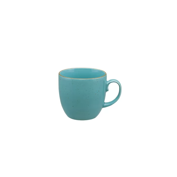 Kubek porcelanowy o pojemności 400 ml w kolorze morskim. W kubku z powodzeniem wypijesz swój ulubiony ciepły napój. Dzięki temu, że ma on niestandardową pojemność to będziesz mógł się cieszyć dłużej swoim napojem.