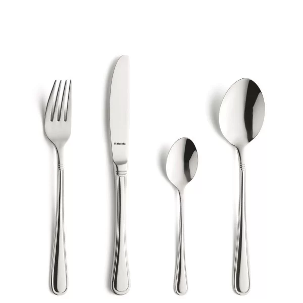 Model Barcelona charakteryzuje się klasycznym designem i tradycyjnym wyglądem. Rękojeści sztućców są zaokrąglone i ozdobione wokół delikatnym grawerem co wysmukla linię tej stalowej zastawy.