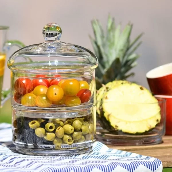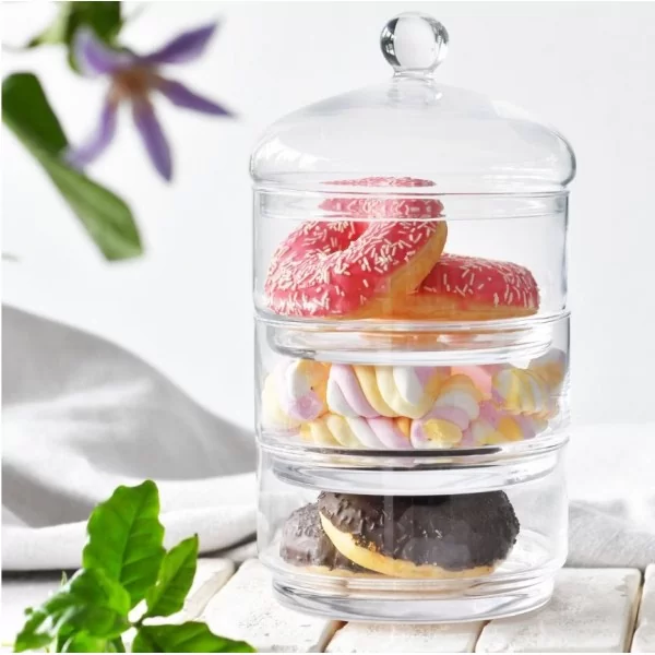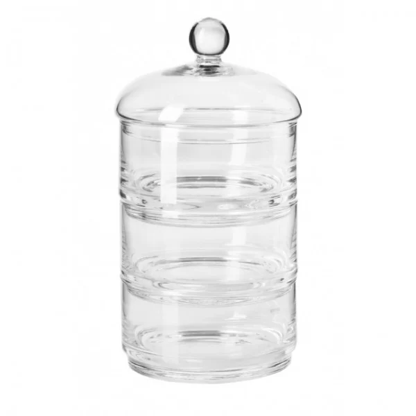 Atrakcyjny pojemnik na ciastka, babeczki i inne przysmaki to jednocześnie praktyczne i stylowe urozmaicenie przechowywania posiłku, które doskonale ozdobi każdą kuchnię i jadalnię. To gustowny, a zarazem funkcjonalny element zastawy, który sprawdzi się zarówno na co dzień, jak i podczas wieczorów towarzyskich. Stylowy kształt walca i klasyczna przykrywka, pomagająca zatrzymać świeżość słodkości na dłużej, doskonale prezentować się będą w każdym wnętrzu. Dzięki swojej formie, pojemnik charakteryzuje się ogromną funkcjonalnością – trzy oddzielne pojemniki, z pozoru tworzące całość, mogą być również używano osobno, jako salaterki.