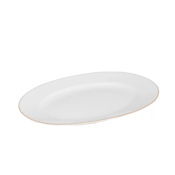 Półmisek owalny o średnicy 31 cm. Porcelana biała dekorowana złotym paskiem. Kolekcja Planet Gold produkowana na naszą wyłączność przez ZPS Karolina.