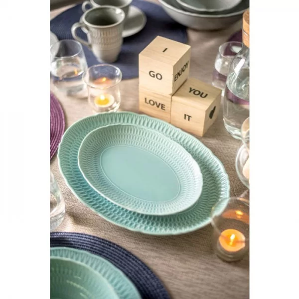 Półmis owalny 34 cm z subtelnymi żłobieniami. Na półmisie z powodzeniem można podawać wędliny, mięsa lub ciasta do popołudniowej kawy z przyjaciółmi.