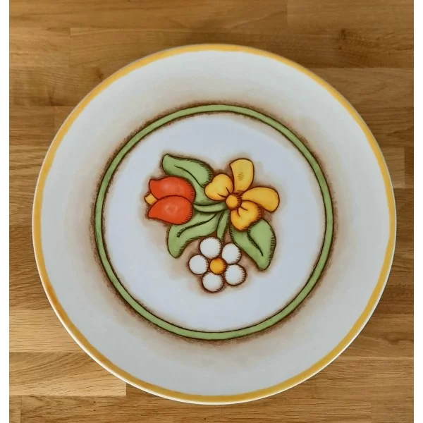 Porcelanowa patera ozdobiona wiosennymi kwiatami. Patera będzie kolorową ozdobą każdego stołu zarówno na co dzień jak również podczas letnich przyjęć w ogrodzie.