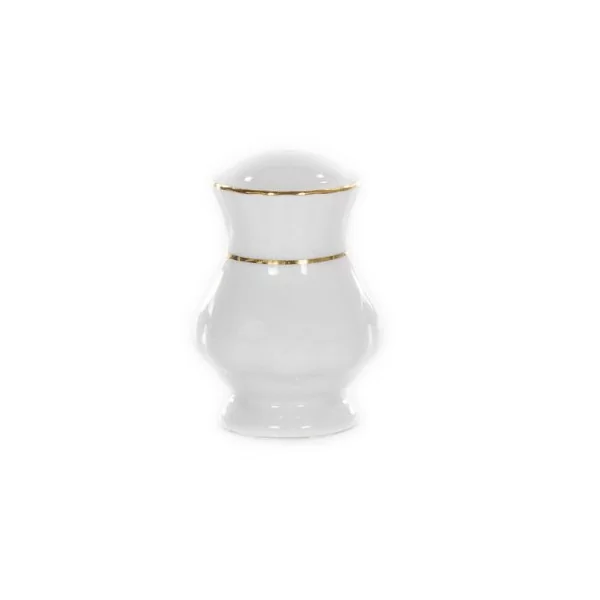 Posypywaczka z jednym oczkiem, dekorowana złotym paskiem.