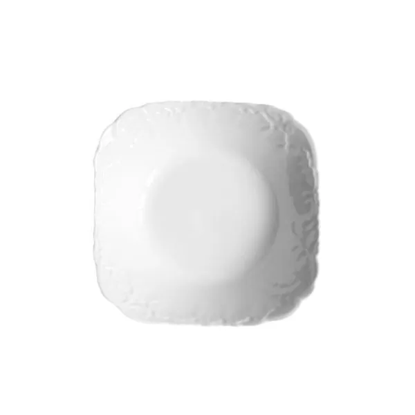 Kwadratowa, porcelanowa salaterka o średnicy 14 cm. Idealnie nada się do podawania pikli lub pojedynczej porcji sałatki lub surówki. Sprawdzi się w użytku na co dzień jak również podczas uroczystych spotkań z rodziną czy znajomymi. Dzięki swojemu delikatnemu zdobieniu w postaci reliefów będzie pasował do każdego wnętrza, zarówno tego klasycznego jak i nowoczesnego. Śnieżnobiała porcelana powoduje, że pasują do niej dodatki we wszystkich kolorach.