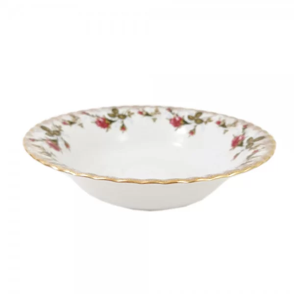 Zdobiona okrągła salaterka o średnicy 23 cm z koelkcji Iwona Złocona Róża Porcelany Chodzież.