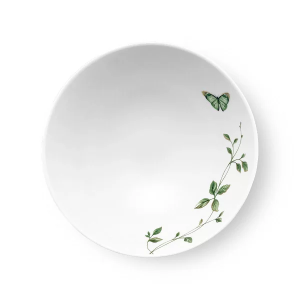 Salaterka okrągła o średnicy 17 cm, wykonana z białej porcelany, dekorowana subtelnym motywem roślinnym i złotą linią. Miseczka o wygodnym kształcie z powodzeniem zastąpi talerz głęboki do zupy, a także posłuży do serwowania surówek, owoców i warzyw.