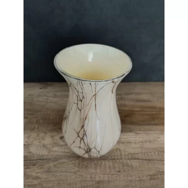 Podstawa wazonu jest okrągła. Wnętrze ma kolor mleczny.