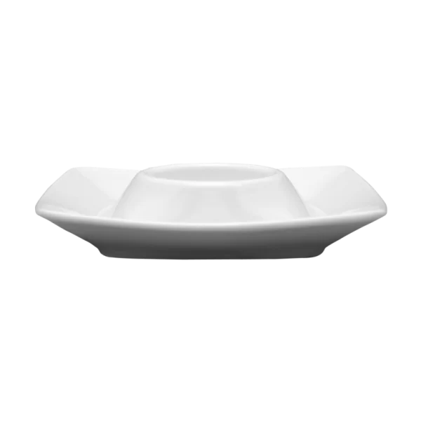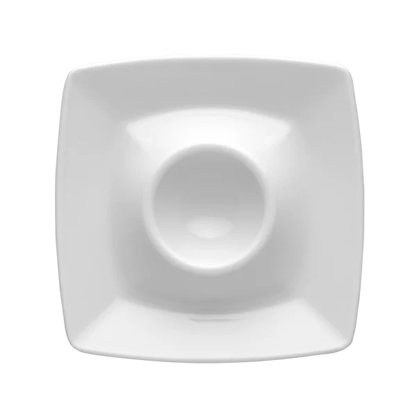 Kwadratowy biały spodek do jajek o średnicy 11,5 cm. Dzięki swojemu prostemu stylowi będzie pasował do każdego wnętrza. Sprawdzi się zarówno na co dzień jak i podczas rodzinnych uroczystości.