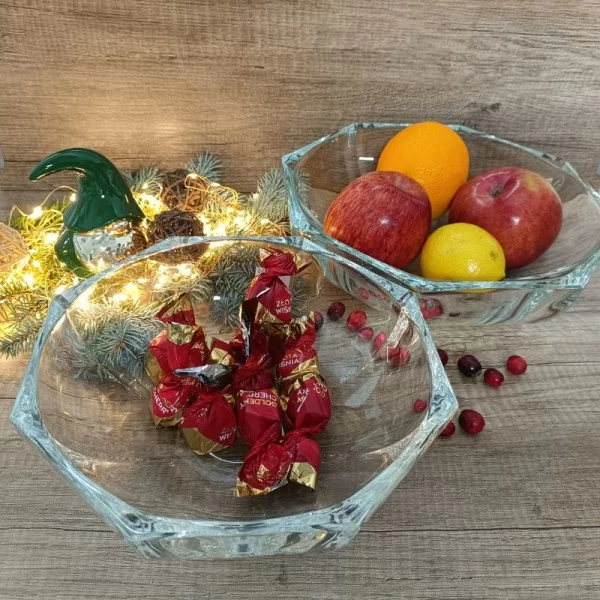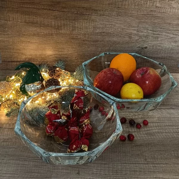 Komplet dwóch owocarek wykonanych z krystaliny. Doskonale nadadzą się do ciastek i owoców. Producentem jest polska huta szkła IRENA.