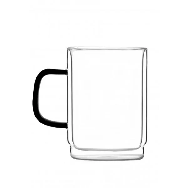 Komplet dwóch termicznych szklanek z podwójnymi ściankami o pojemności 350 ml. Atrakcyjny kształt oraz ergonomiczne ucho w czarnym kolorze sprawia, że szklanki są nie tylko bardzo wygodne w użytkowaniu ale również ładnie prezentują się na stole. Szklanki wykonane są w technologii podwójnych ścianek. Dzięki temu Twój napój wewnątrz naczynia dłużej zachowuje swoją temperaturę, a zewnętrzna część nie parzy w dłonie.