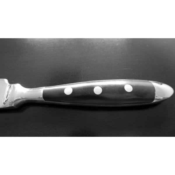 Nóż do steków z nitowaną rękojeścią w kolorze czarnym.